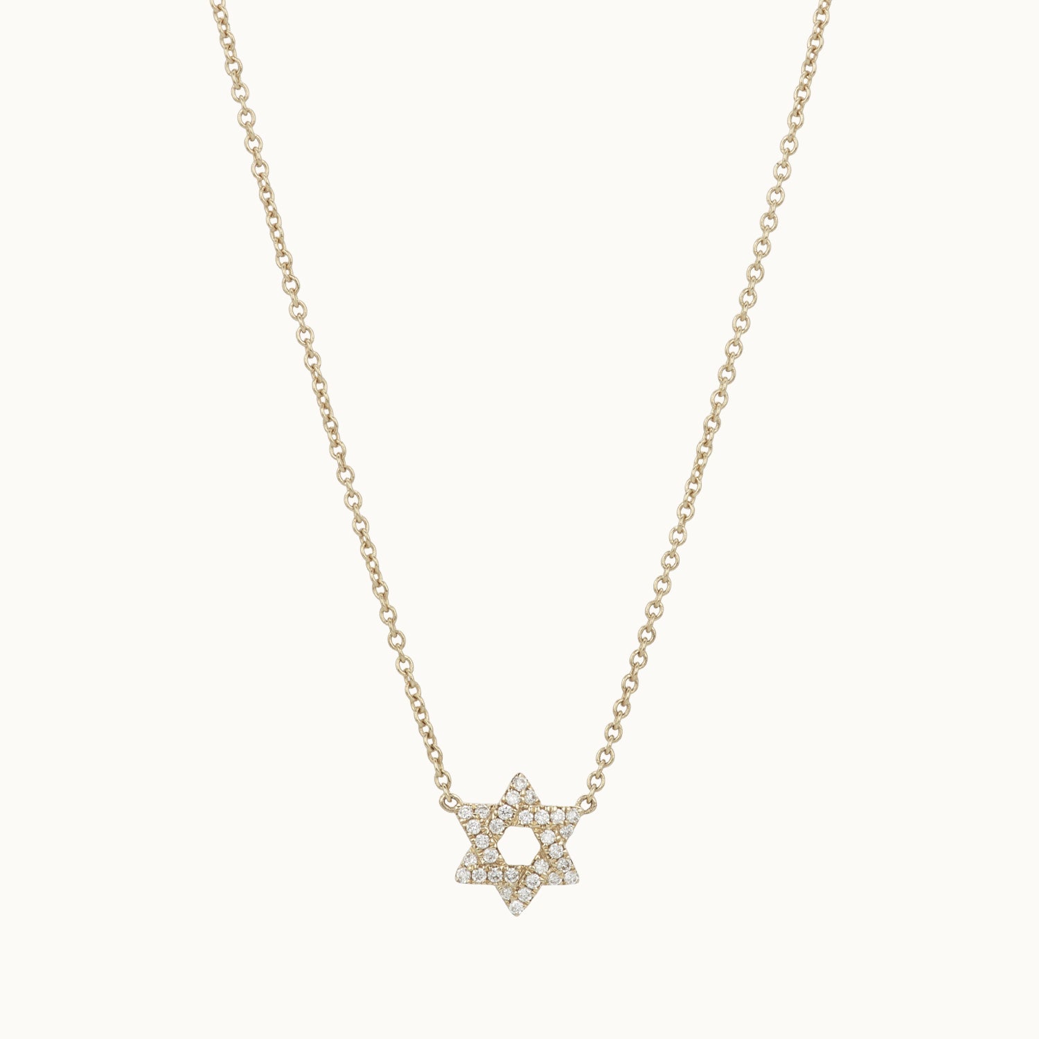 Our dainty Star of David necklace is crafted from 14K gold and encrusted with quality diamonds. The 16-inch chain with adjustable loops at 15 and 14 inches adds an extra level of flexibility, making it perfect for layering or to wear alone.